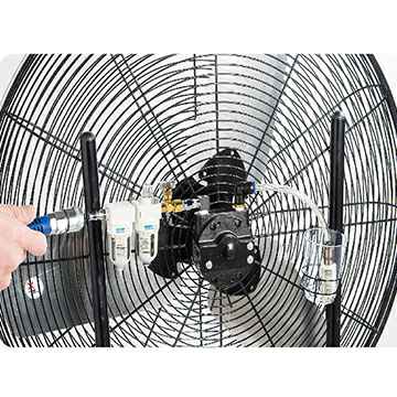 使用空气压缩机所制造的压缩机空气驱动马达,带动风扇运转。